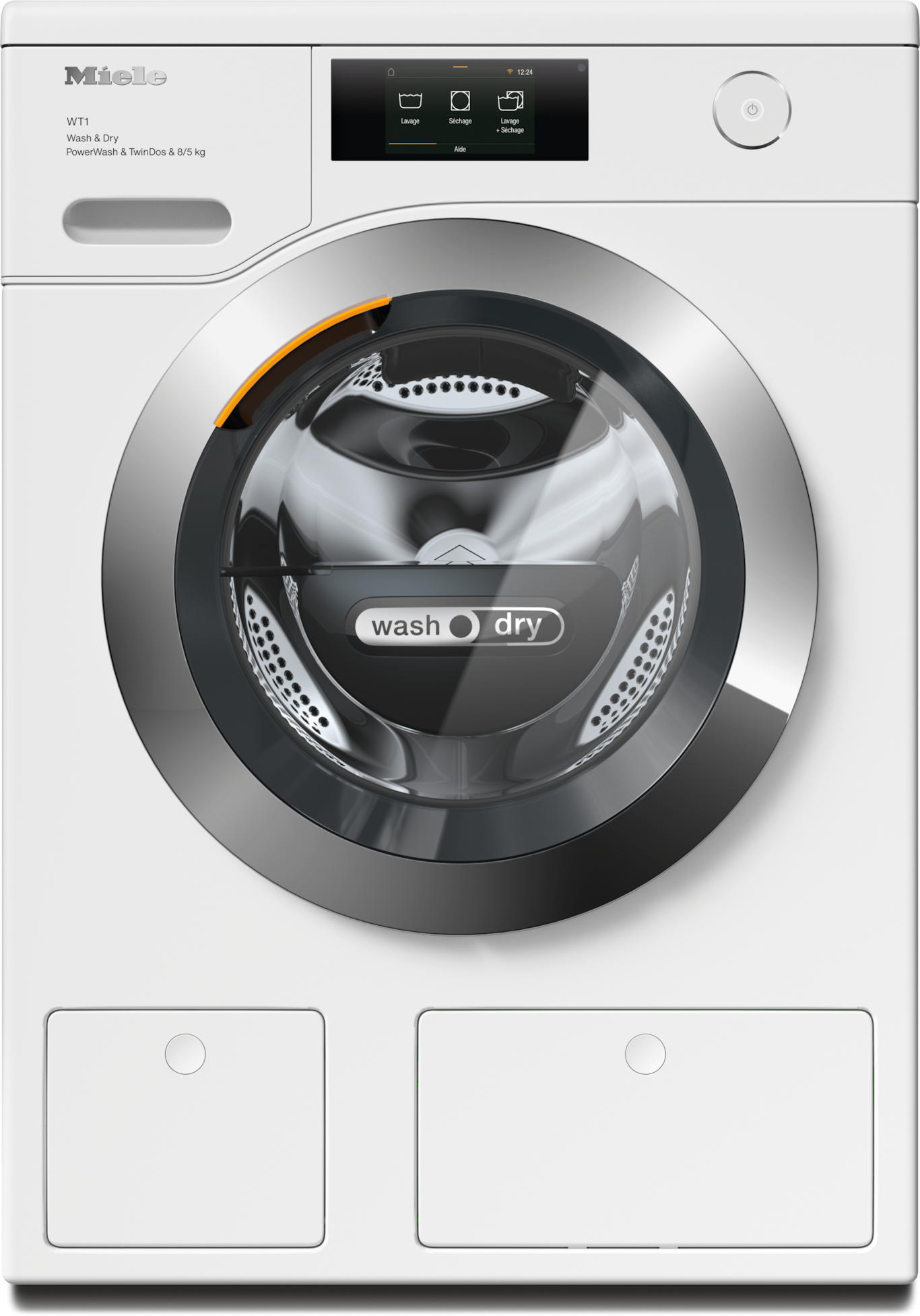 - 12.Pendant la phase de développement de la série de lave-linge séchants WT1, Miele a testé les modèles et les composants principaux dans différents programmes en les soumettant à 5000 cycles de lavage et 4000 cycles de séchage (= 5 cycles de lavage et 4 cycles de séchage par semaine pendant 50 semaines par an). En savoir plus : miele.com/20years