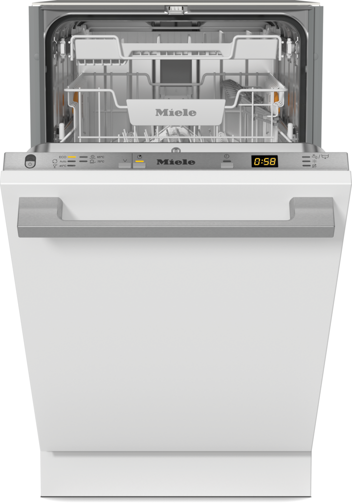 - 4.Au cours de la phase de développement des séries de lave-vaisselle G 5000 et G 7000, Miele a testé les modèles et les organes électriques au cours de 5600 cycles de lavage (= 280 cycles de lavage par an sur une période de 20 ans) dans différents programmes. En savoir plus : miele.com/20years