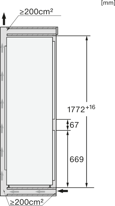 Rangement pratique : la grande profondeur permet de ranger une plaque de cuisson dans l’appareil de froid.