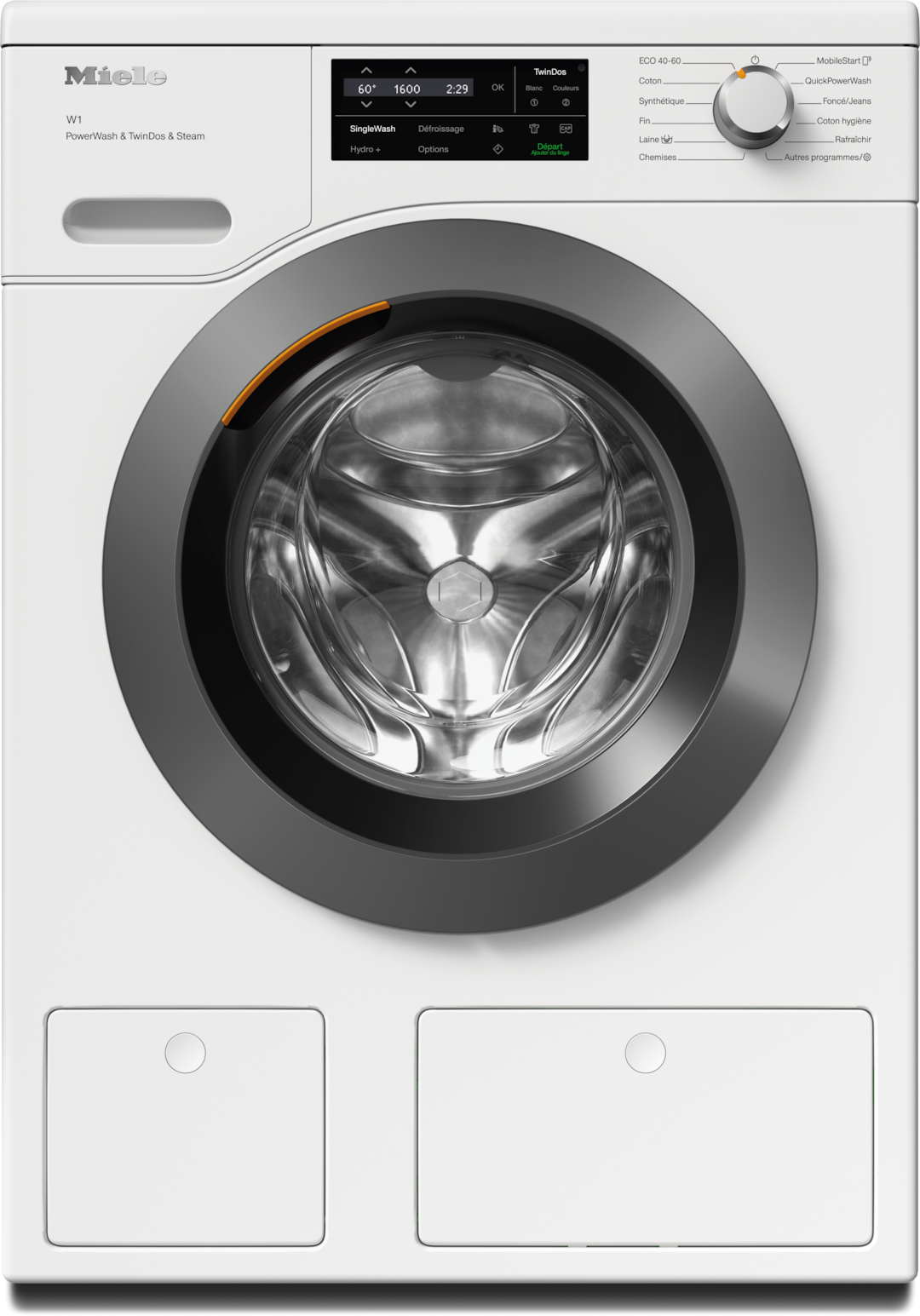 - 13.Testé scientifiquement par l’École supérieure d’Albstadt-Sigmaringen et récompensé par le label Or de l’Institut d’hygiène et de virologie intégratives (InFluenc_H). Vaut pour tous les modèles avec TwinDos ® et PowerWash pour le programme Coton hygiène 60 °C et avec l’option Hygiene + Extra. La description de la méthode est disponible en cliquant sur le lien suivant : https://www.miele.com/wa-c