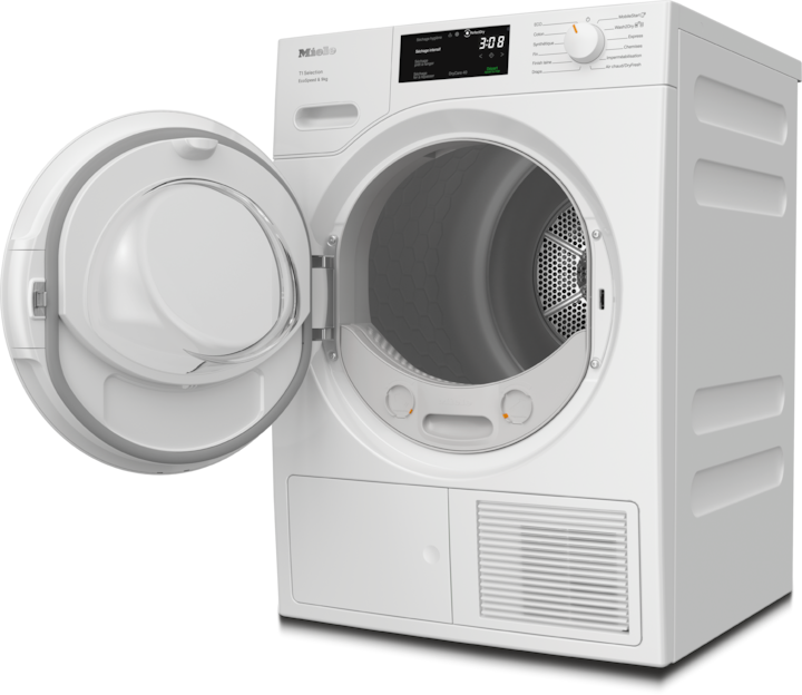 - 6.Gain de temps calculé par rapport aux sèche-linge Miele sans la fonction EcoSpeed avec la même charge et une efficacité énergétique similaire. Résultat testé avec le programme « Coton » à pleine charge.