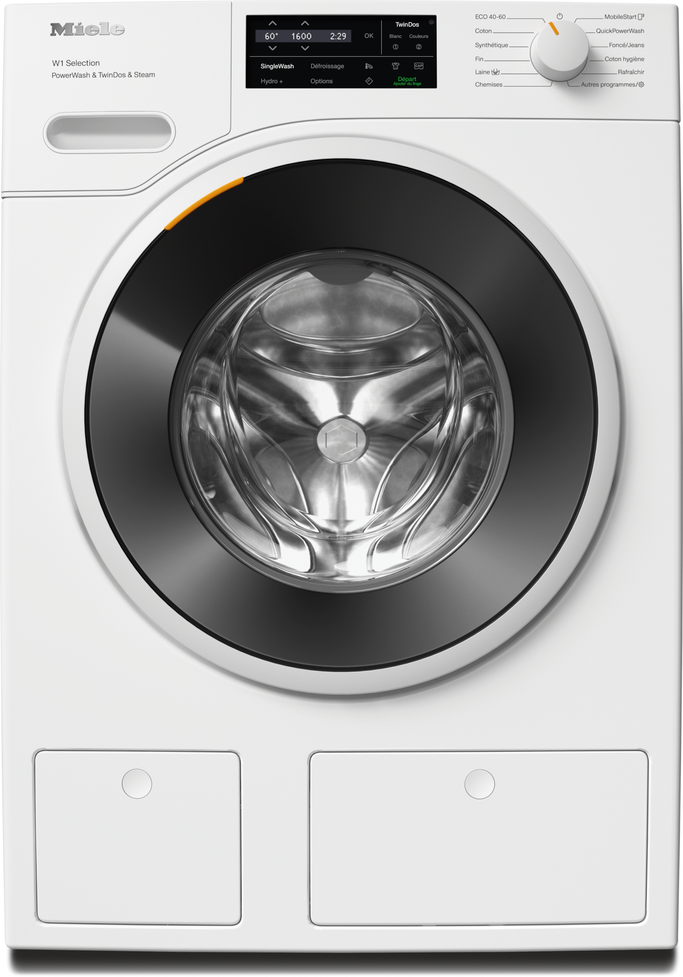 - 10.Testé scientifiquement par l’École supérieure d’Albstadt-Sigmaringen et récompensé par le label Or de l’Institut d’hygiène et de virologie intégratives (InFluenc_H). Vaut pour tous les modèles avec TwinDos ® et PowerWash pour le programme Coton hygiène 60 °C et avec l’option Hygiene + Extra. La description de la méthode est disponible en cliquant sur le lien suivant : https://www.miele.com/wa-c