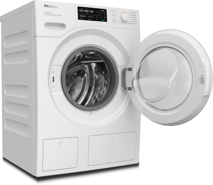 - 14.Lors du développement de la série de lave-linge W1/W2, Miele en a testé les modèles et les composants principaux avec 5000 charges (= 5 charges par semaine pendant 50 semaines par an) dans différents programmes. En savoir plus : miele.com/20years