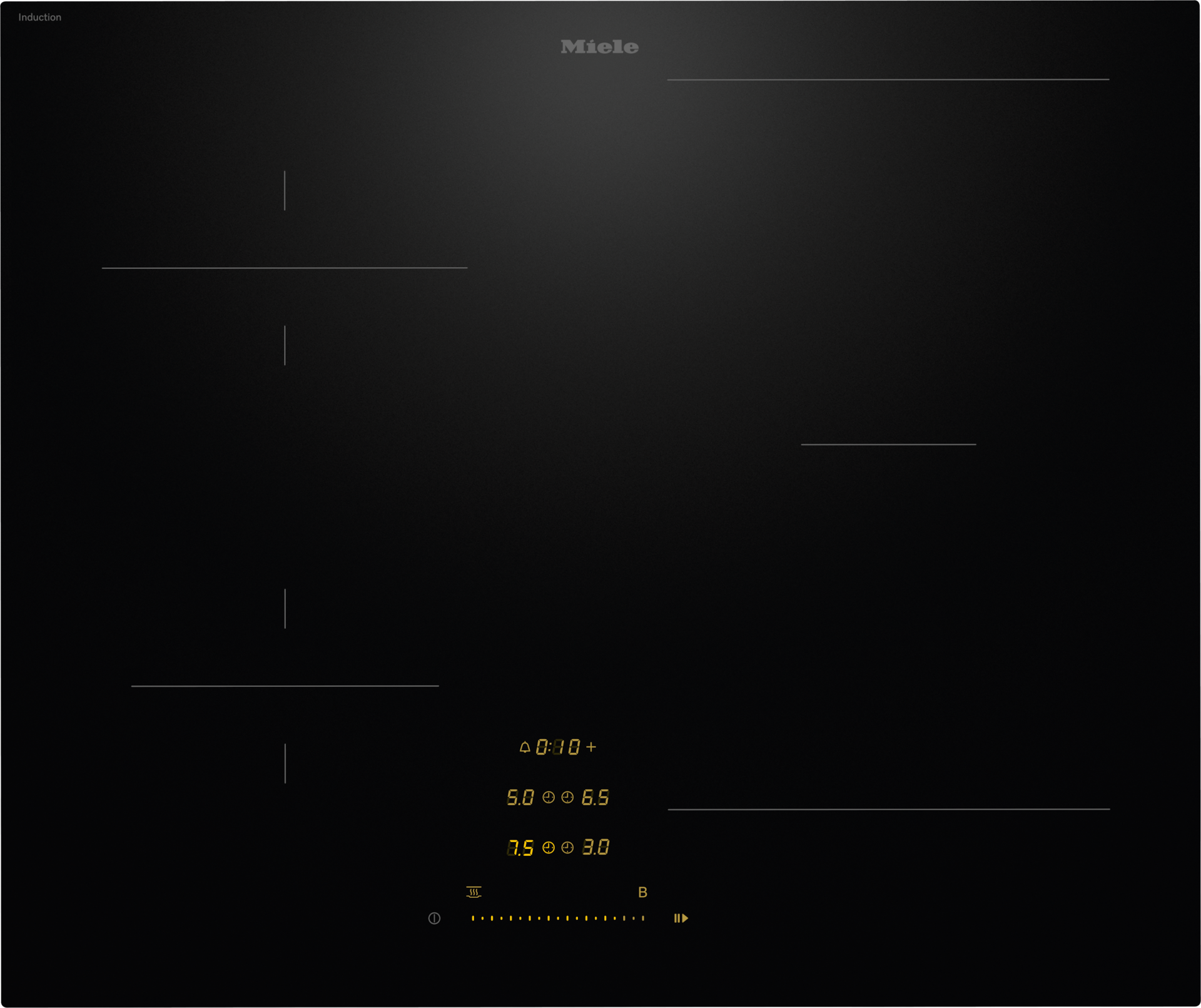 Un curseur de réglage central vous donne une vue d’ensemble de toutes les zones de cuisson et de tous les niveaux de puissance et vous permet de les réguler avec précision.